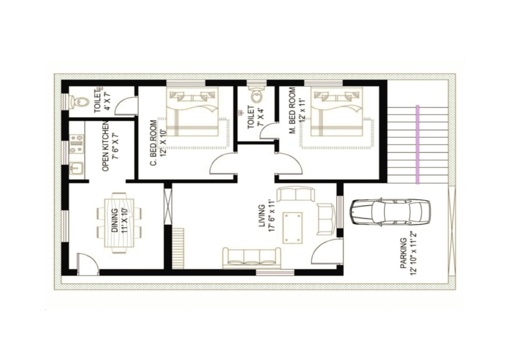 - Toilets:- One Indian WC, on European WC and One wash basin of standard make, one in attached toilet and one in dinning with light coloured vitreous sanitary ware, glazed dado upto ‘ Height in all toilets with ceramic Flooring.